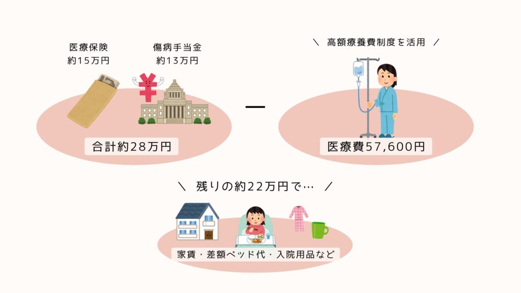 前回の記事では、手取り17万円の人が1ヶ月入院した場合、実際にいくら足りなくなるのかをシミュレーションしました。